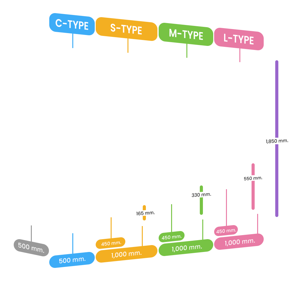 Consists of 1 control cabinet (C-TYPE) with a touch screen, connected to various sized storage.